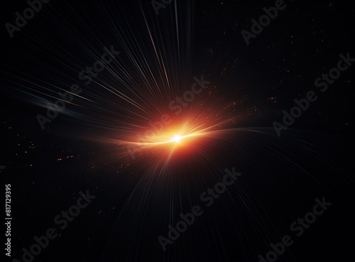 Wall mural light flare in the dark space. abstract background with shiny lens glare effect.
