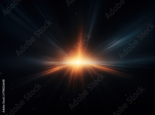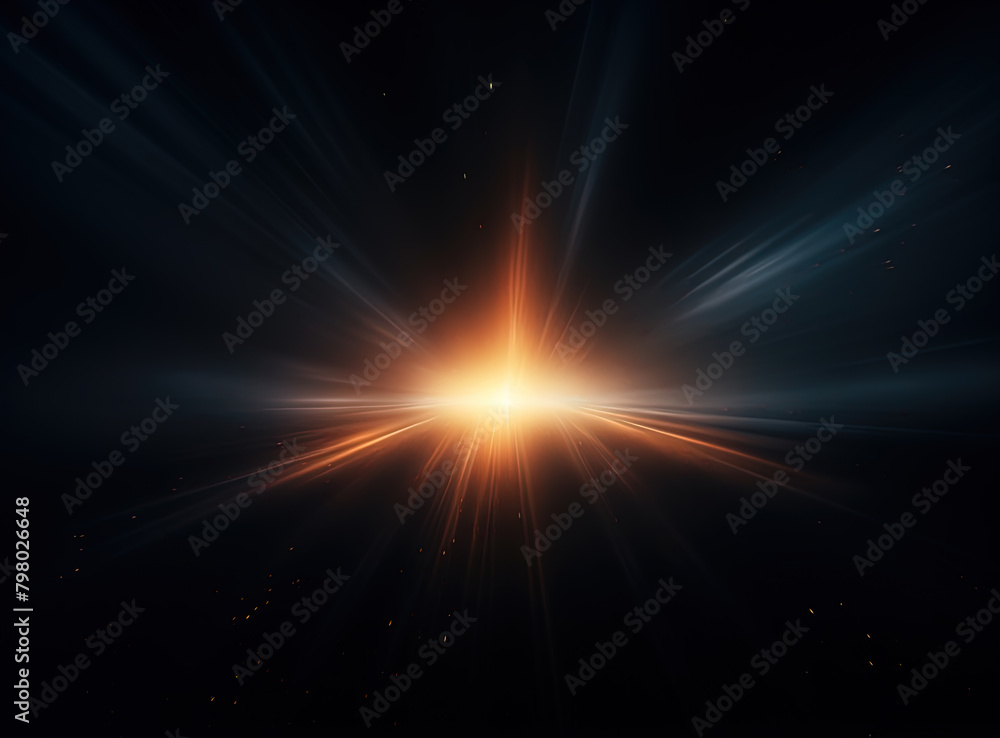 Wall mural light flare in the dark space. abstract background with shiny lens glare effect.