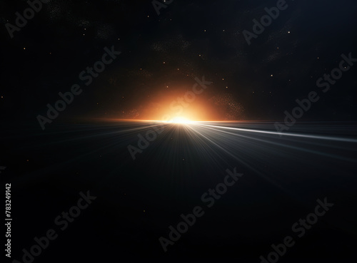 Wall mural light flare in the dark space. abstract background with shiny lens glare effect.