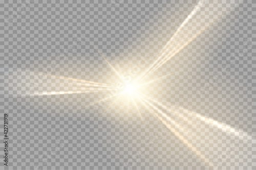 The watermark will not be included on Wall mural.: Light flare special effect with rays of light and magic sparkles - glow transparent vector light effe