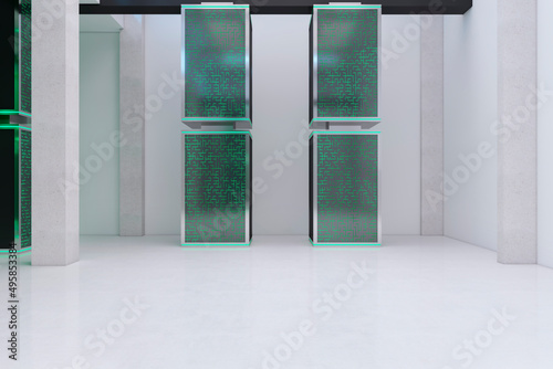 Wall mural light green server room interior. database and technology concept. 3d rendering.