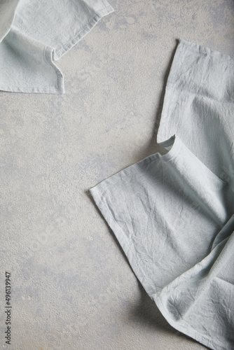 Light linen napkin on gray concrete texture or background - with place for text and imageWall mural