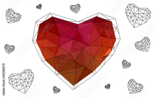 Wall mural : Light red heart isolated on white background with pattern consisting of triangles -