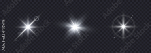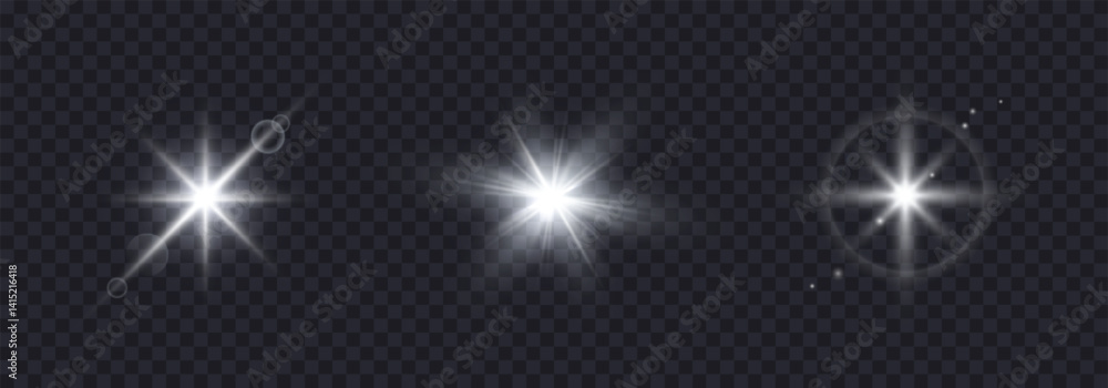 Wall mural light set collection on transparent background. white starlight effect with glow, bokeh and sparkles