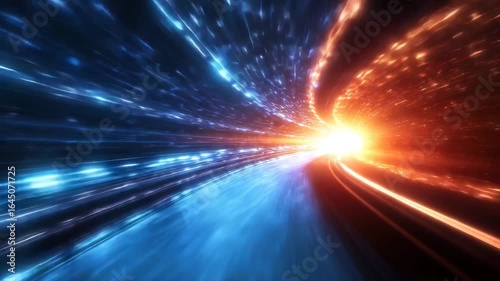Wall mural : Light speed tunnel glowing blue orange particles create dynamic futuristic motion energy vibrant cos