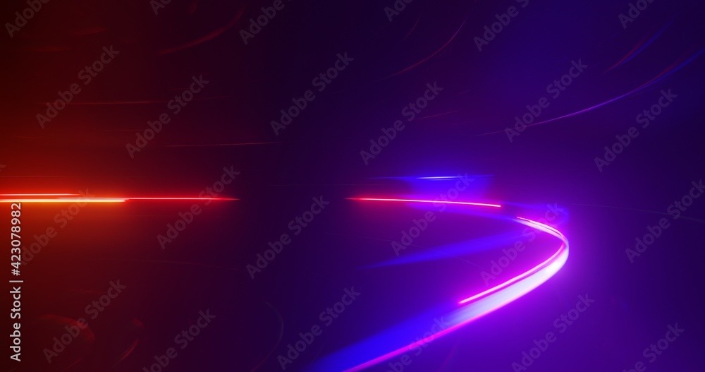 Wall mural light trails in tunnel. abstract background with glowing lines, dynamic lights shape in motion on da - Wall murals Wall mural light trails in tunnel. abstract background with glowing lines, dynamic lights shape in motion on da - Wall murals