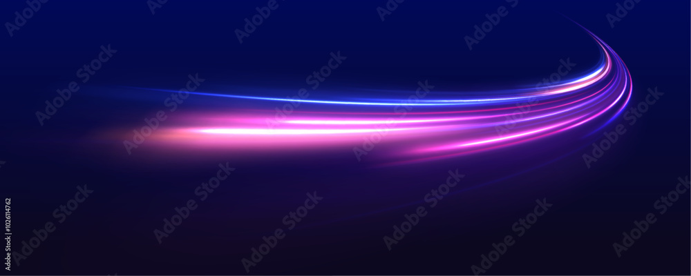 The watermark will not be included on Wall mural.: Light trails on road at night - abstract futuristic neon background with glowing ascending lines - bea