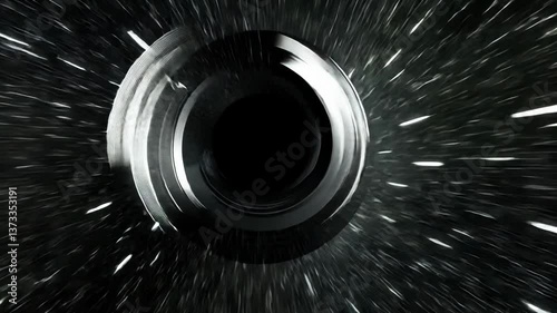 The watermark will not be included on Wall mural.: Light travels through a dark vortex with spiraling motion and dynamic lines in a cosmic setting