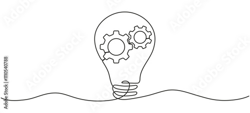 Lightbulb with cogwheel inside continuous line art drawing - creative idea process - innovation symbolWall mural