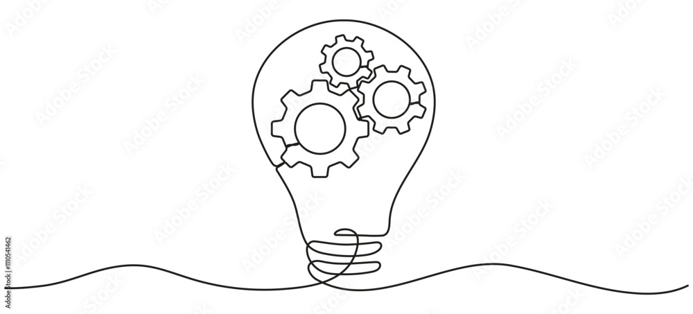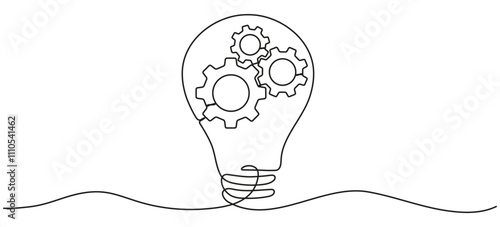 Lightbulb with cogwheel inside continuous line art drawing - creative idea process - innovation symbolWall mural