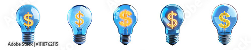 Wall mural : Lightbulb with dollar symbol - 3d set on transparent background png file