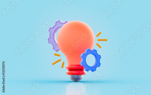 Wall mural : Lightbulb with gear sign 3d render concept for creative invention new nano technology