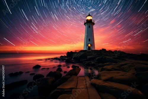 The watermark will not be included on Wall mural.: Lighthouse on the seashore - background with selective focus and copy space