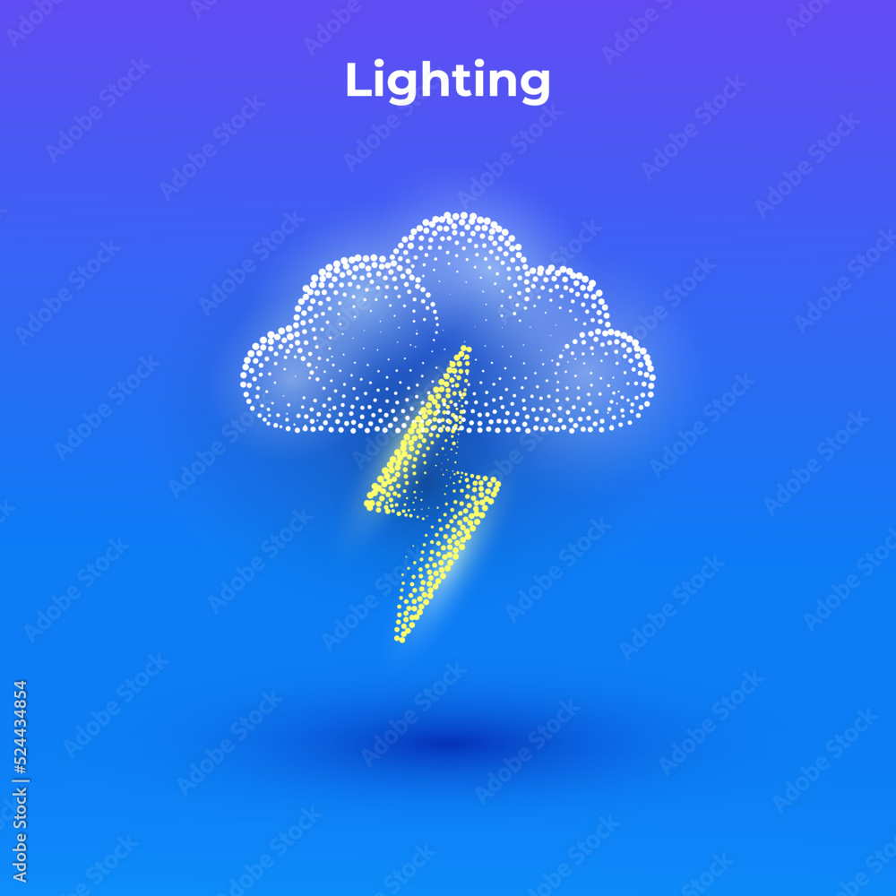 Wall mural lighting 3d icon with transparent effect. halftone weather simple icon with minimalistic cloud and l