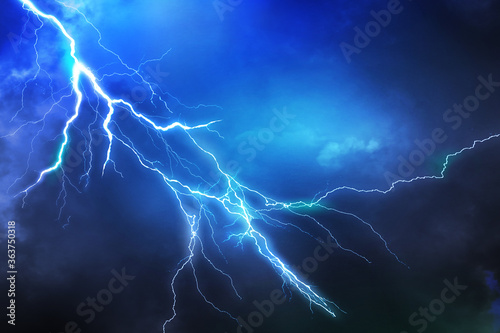 The watermark will not be included on Wall mural.: Lightning, thunder cloud dark cloudy sky, copy space for your text