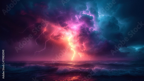 Wall mural : Lightning among ominous shadows arrows of light breaking dark clouds create the effect of light in t