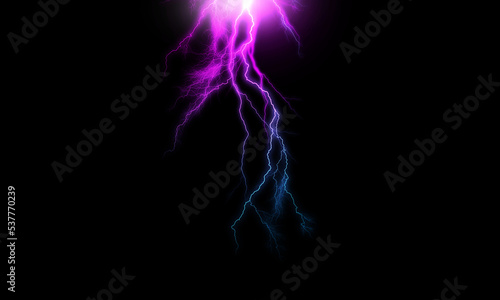 The watermark will not be included on Wall mural.: Lightning effect on black background - thunderbolt with rays of light - thunderstorm natural phenomeno