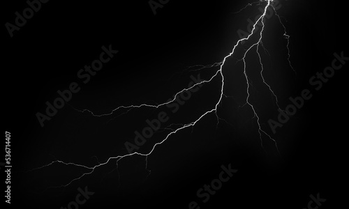 The watermark will not be included on Wall mural.: Lightning effect on black background - thunderbolt with rays of light - thunderstorm natural phenomeno
