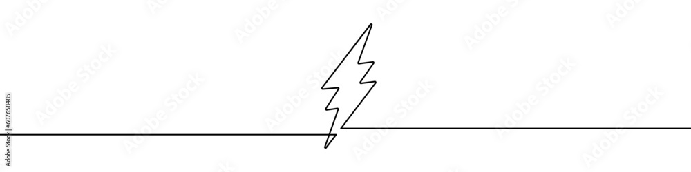 The watermark will not be included on Wall mural.: Lightning icon in continuous line drawing style - line art of lightning bolt icon -