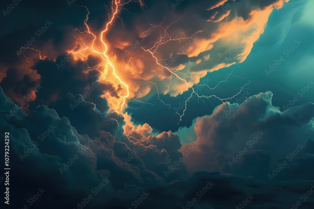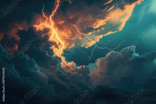 The watermark will not be included on Wall mural.: Lightning lightning with dramatic clouds composite image