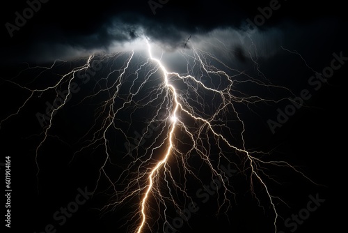 Wall mural : Lightning strike on black background stormy sky made with generative ai