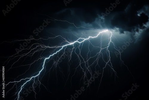 Wall mural lightning strike on black background stormy sky made with generative ai