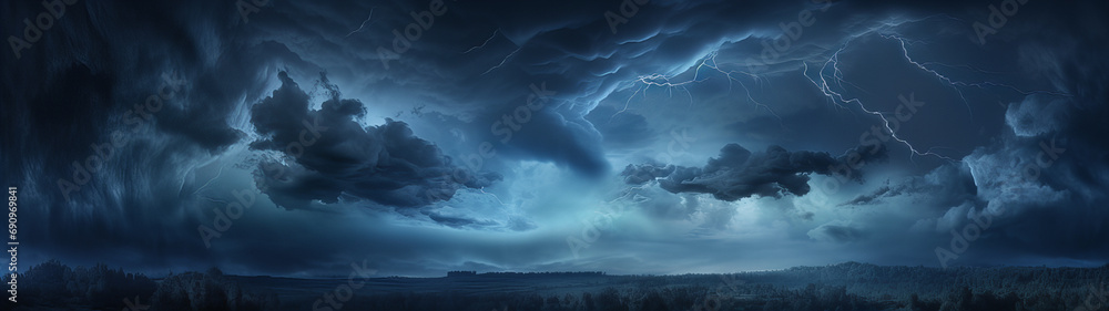 Wall mural lightning striking lightning in the clouds in the beautiful night sky over mountains, mysterious ban - Wall murals Wall mural lightning striking lightning in the clouds in the beautiful night sky over mountains, mysterious ban - Wall murals