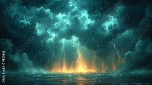 The watermark will not be included on Wall mural.: Lightning texture with rain flashes of light, accompanied by drops of rain, create an atmosphere of
