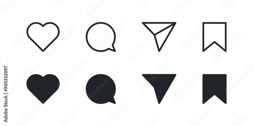 Wall mural like, comment, share and save social media buttons for a user interface in 2 variations. vector icon - Wall murals Wall mural like, comment, share and save social media buttons for a user interface in 2 variations. vector icon - Wall murals
