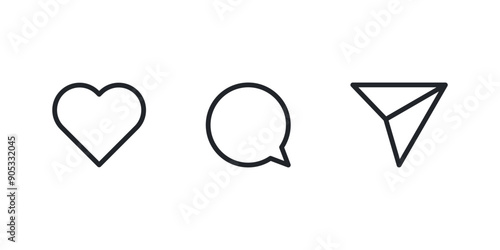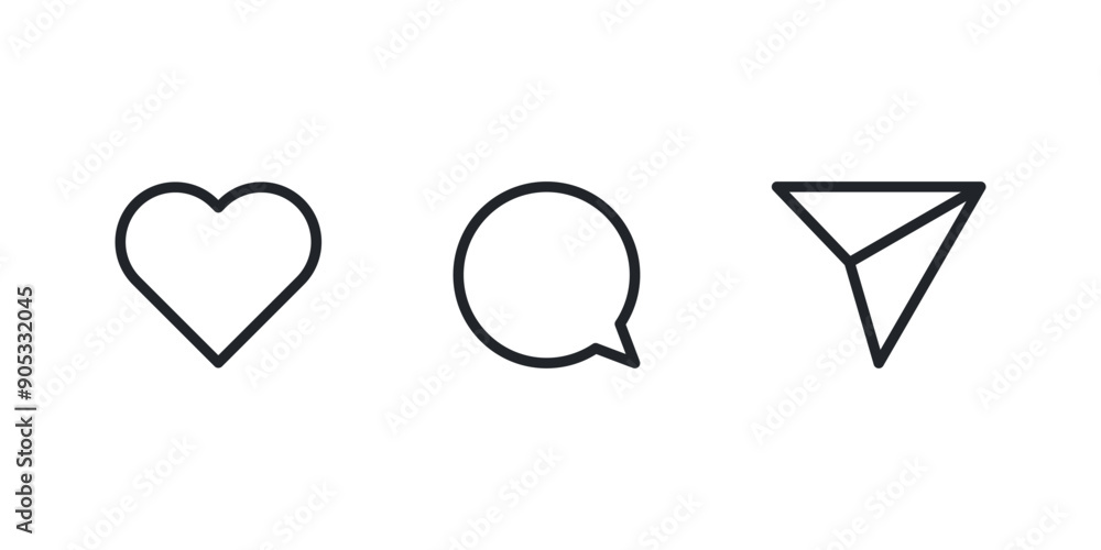 Wall mural : Like, comment and share social media outlined buttons for a user interface - vector icon set in flat