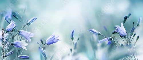 The watermark will not be included on Wall mural.: Lilac bellflowers on a blurred blue background