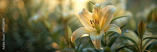 Wall mural lily flowers in bloom in the garden with shallow depth of field