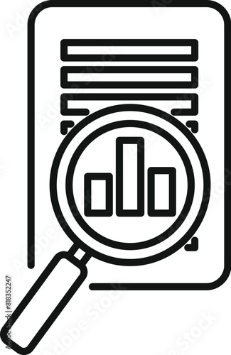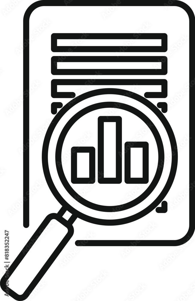Wall mural : Line art icon of a document with bar graph and magnifying glass signifying research