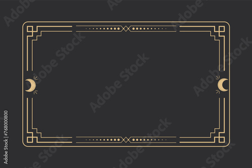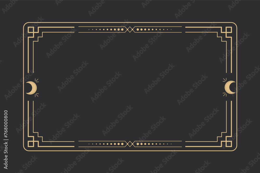 Wall mural line golden frame, celestiam minimal esoteric border, mystyc linear decoration with dots, corners is