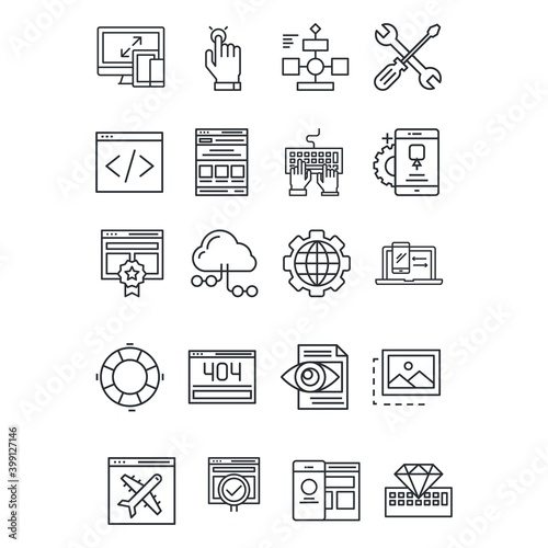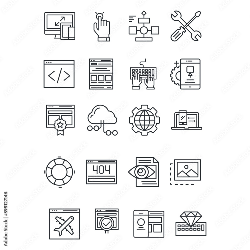 Wall mural line icons set with elements of responsive web development service, website programming process, web - Wall murals Wall mural line icons set with elements of responsive web development service, website programming process, web - Wall murals