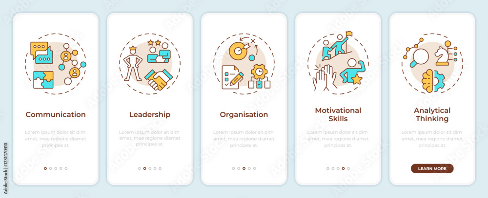 Wall mural : Line manager skills onboarding mobile app screen - corporate - walkthrough 5 steps editable graphic in