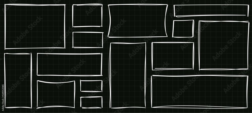 Wall mural line stamps boxes set. square and rectangle grunge stroke frames. rectangle outline border collectio