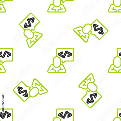 Wall mural : Line web design and front end development icon isolated seamless pattern on white background - vector