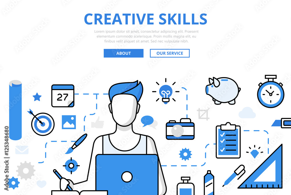 Wall mural : Linear flat creative skill infographic vector graphic web design