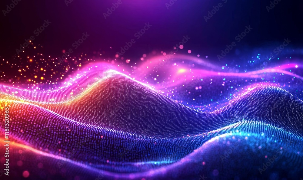 The watermark will not be included on Wall mural.: Lines, network and connection with light, dots and streaming for development of information technolo