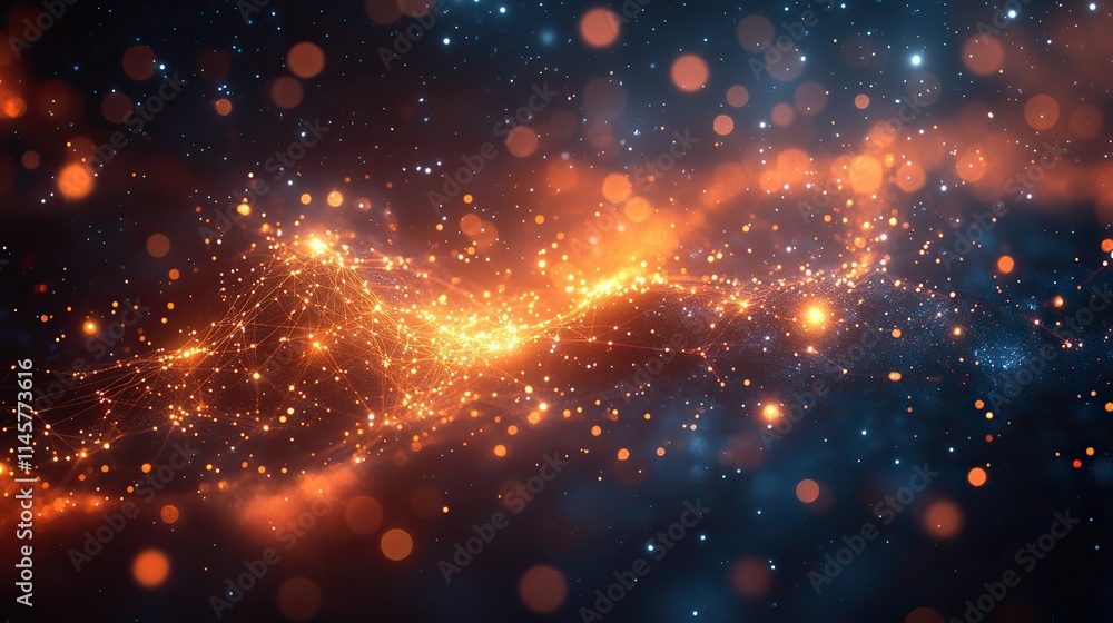 Wall mural lines and bokeh lights represent network connections, cloud computing, and digital transformation. - Wall murals Wall mural lines and bokeh lights represent network connections, cloud computing, and digital transformation. - Wall murals