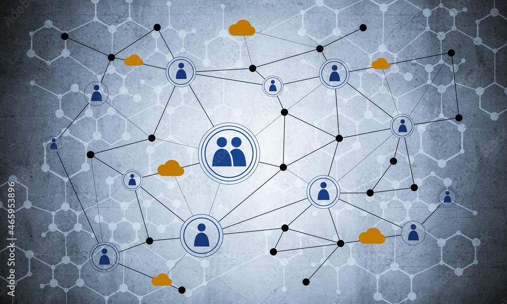 Wall mural : Lines and dots as networking idea drawn on cement background