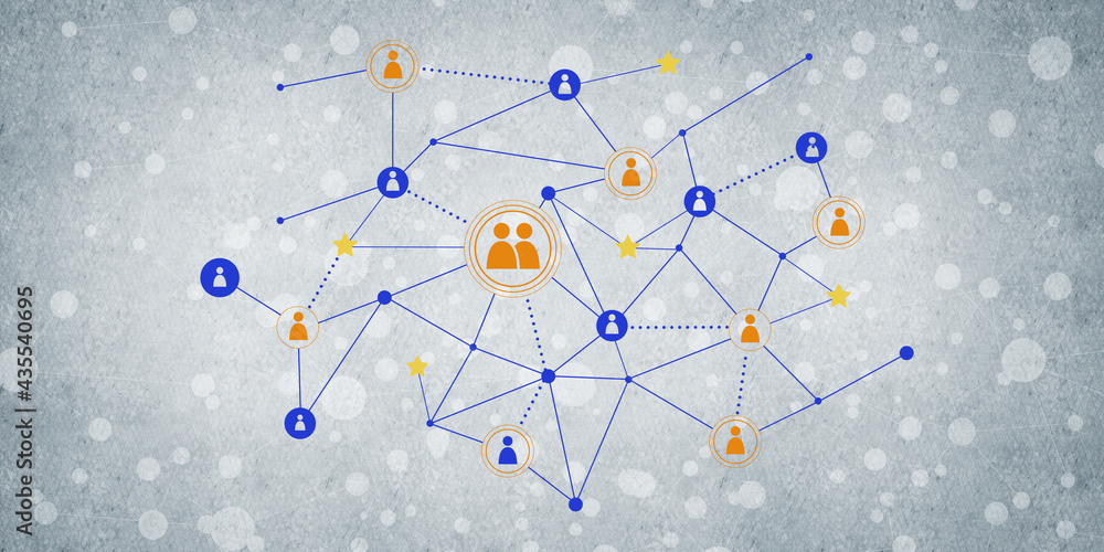 Wall mural : Lines and dots as networking idea drawn on cement background