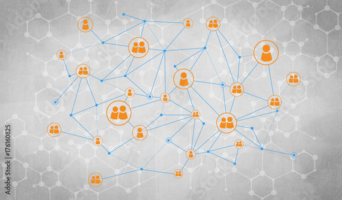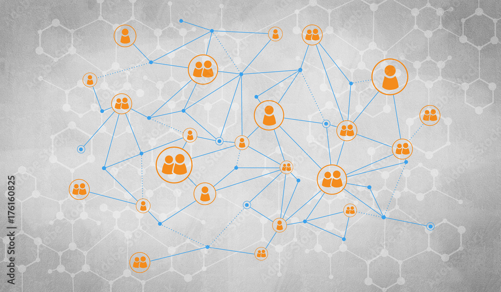 Wall mural : Lines and dots as networking idea drawn on cement background