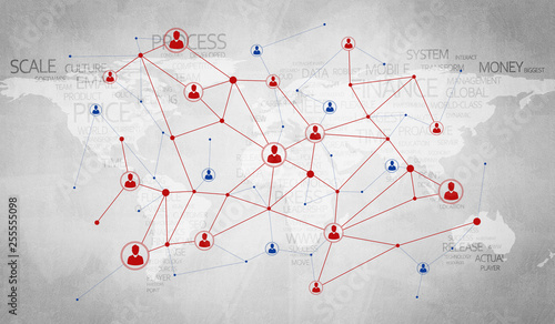 Wall mural : Lines and dots as networking idea drawn on cement background