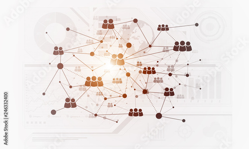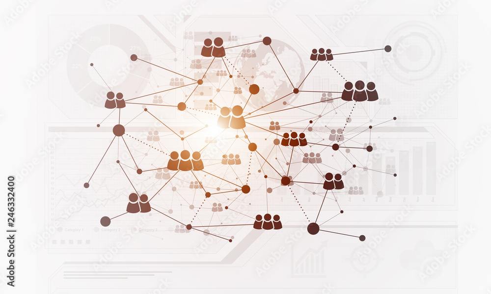 The watermark will not be included on Wall mural.: Lines and dots as networking idea drawn on white background