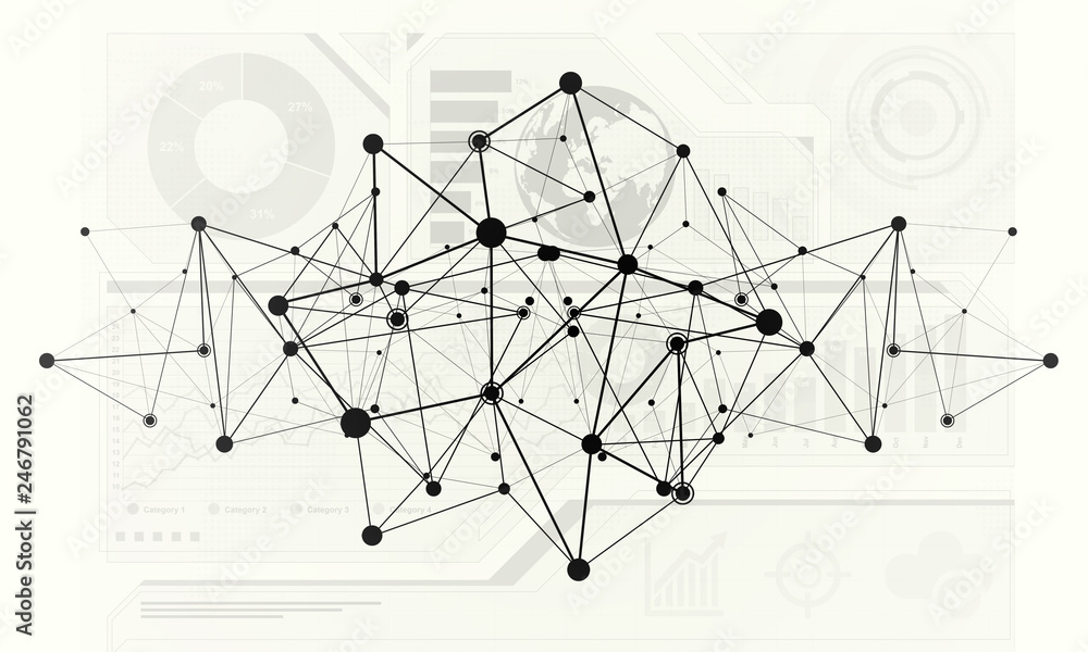 The watermark will not be included on Wall mural.: Lines and dots as networking idea drawn on white background