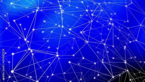 Wall mural : Lines flow creating an intriguing landscape of connected network lines on blue background - communica
