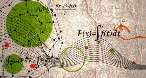 The watermark will not be included on Wall mural.: Lines pattern background for presentation - science and technology - hand holding math formula