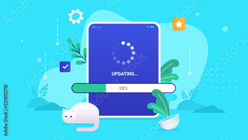 Wall mural : Load bar and loading wheel on tablet device while waiting for system and software update - vector ill